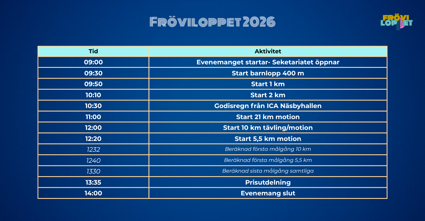 Huvudloppet sträcker sig över 10 km genom vackra Frövi och ingår i Södra Svealands löparserie.